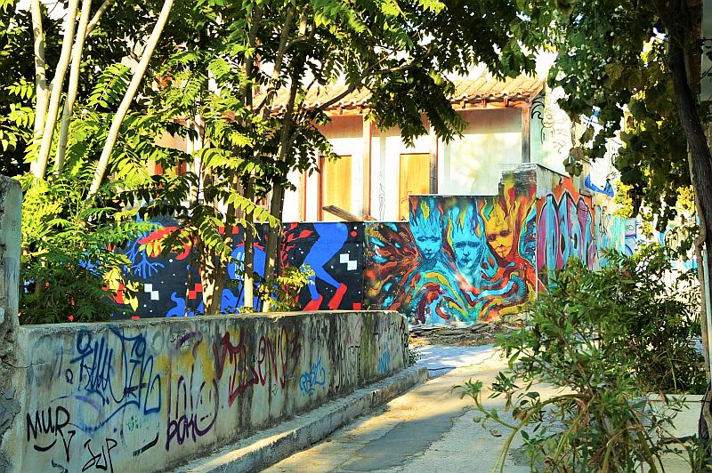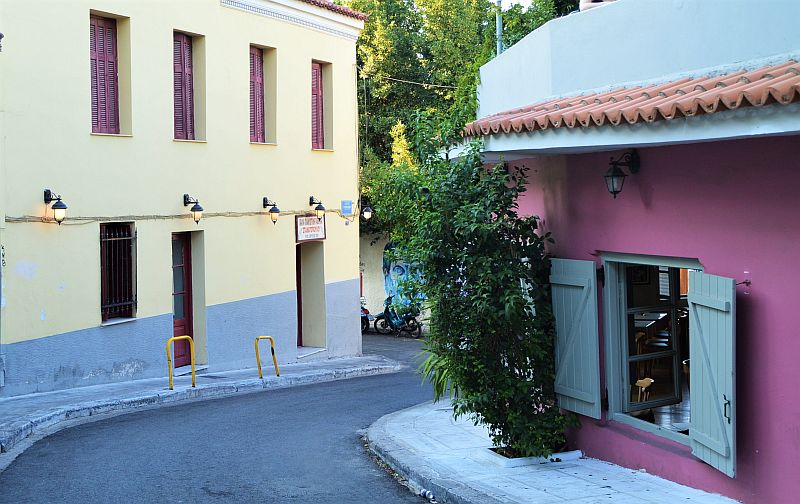 Vom Monastiráki Platz aus sind es noch ein paar Meter bis zu den breiteren Alleen Odos Apostolou Pavlou und Dionysiou Areopagitou. Jetzt wird der Spaziergang ganz ruhig, es sind schattige Fußgängerstraßen im Grünen, immer mit Blick auf die Akropolis. Der Weg führt dann am Eingang zu den Anlagen vorbei wieder zurück zum Akropolis Museum.