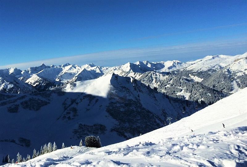 Der Ort meiner kleinen Runderneuerung liegt im Allgäu, genauer im Kleinwalsertal, und heißt Riezlern. Das Skigebiet Kanzelwand/Fellhorn ist von Stuttgart aus in etwa 2 bis 3 Stunden mit dem Auto zu erreichen und bietet für jeden Skifahrer passende Pisten. 36 Pistenkilometer, 14 Bergbahnen und Lifte. Das gesamte Gebiet Oberstdorf/Kleinwalsertal umfasst auch noch Söllereck, Nebelhorn und Walmendinger Horn. Es erstreckt sich über 128 Kilometer Piste in Deutschland und Österreich. Unten gibt es übrigens auch wunderbare verschneite Landschaften für alle Langlauf-Fans.
