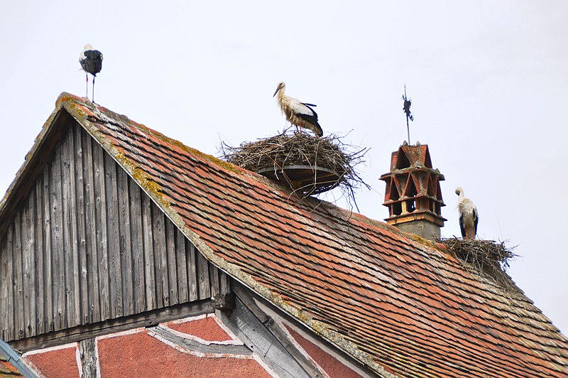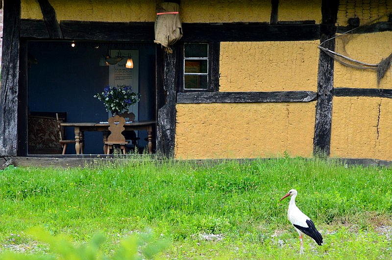 Und was darf im Elsass nicht fehlen? Richtig, ein Storch. Entsprechend begeistert waren wir auch beim Reinlaufen ins Museum, als wir gleich im Eingangsbereich einen entdeckt haben, der sich auch noch dekorativ in Pose gestellt hat. Was wir da noch nicht wussten: Im Ecomusée sitzt fast auf jedem Dach mindestens ein Storch. Teilweise sind es bis zu drei oder vier. Die Kids haben gleich angefangen zu wetteifern, wer die meisten gesehen hat.