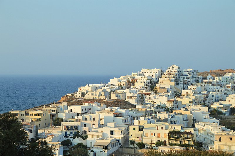 Die größte Kykladeninsel empfängt einen genauso mit hübschen weiß-blauen Häusern wie die anderen. Im Unterschied zu Mykonos, Santorin oder Paros ist Naxos aber keine reine Touristeninsel. Dort ist nicht jede Ecke so herausgeputzt. Es gibt einige unberührte und auch im August leere Strände, außerdem viele Möglichkeiten für schöne Ausflüge in Bergdörfer oder Wanderungen. Mein Schönstes waren aber tatsächlich die Strände. Ich halte es zwar immer nur kurze Zeit auf einem Handtuch am Strand aus, aber gegen Abend dann mit den Füßen im Sand auf einem Tavernen-Holzstuhl sitzen und auf ein paar Boote im Abendlicht schauen … einfach göttlich.