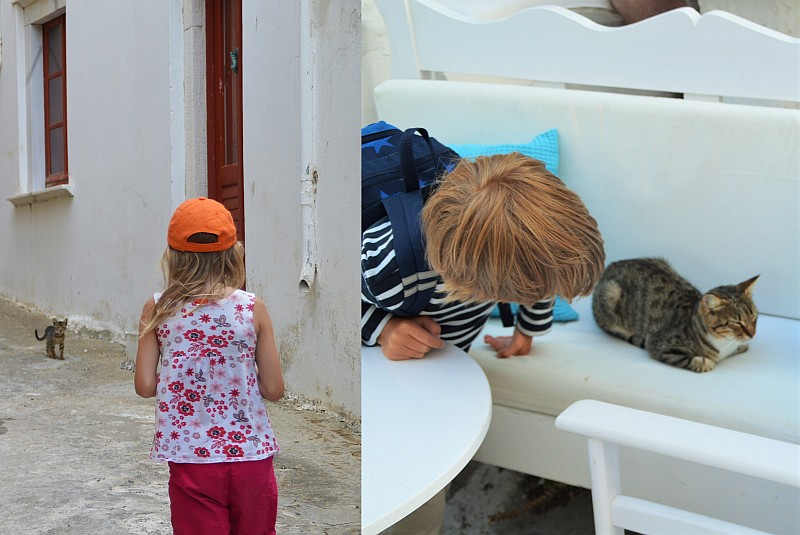 Das war zwar mehr ein Kinder-Highlight, aber ich finde Katzen auch toll. So sind Kiddy 1, Kiddo 2 und ich voll auf unsere Kosten gekommen, was das Anschmachten von kleinen knuddigen Kätzchen angeht. Sie sitzen teilweise so hingegossen genau am richtigen Fleck fürs Foto, dass man sich echt fragt, ob das inszeniert ist. Auf den Kykladen müssen tausende von Katzen leben, sie sind überall und teilweise in ganzen Gruppen unterwegs. Wir hatten viel Spaß mit den Tierchen, vom Katzenzählen bis zu Momenten, in denen wir fünf kleine Kätzchen ewig dabei beobachtet haben, wie sie uns beobachten.
