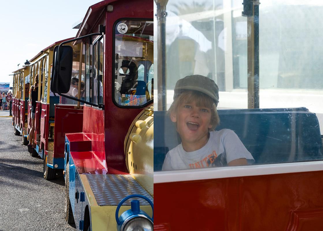 Ich bin im Touristenzug gefahren! Das glaubt mir vielleicht erstmal keiner, der mich kennt. Aber bei aller Abneigung gegen solche mega-touristischen Einrichtungen muss ich zugeben, dass diese Zugfahrt echt etwas hat. Kiddo 2 fand es natürlich mega. Gerade wegen der quietschbunten Optik. Was ich gut fand: Die etwa dreistündige Fahrt bringt einen auf Nebensträßchen quer durch die Natur zu verschiedenen Buchten und Orten im Landesinneren. Klar, die Orte kann man auch alleine besuchen. Aber die Route querfeldein hat uns ein paar Einblicke abseits der größeren Straßen gezeigt. Wir sind an vielen Häusern in Ibiza-typischer Bauweise vorbeigekommen, haben den Ibiza-Rollercoaster getestet – eine Strecke bergauf-bergab – und hatten einige schöne Ausblicke auf die typischen Bäume in roter Ibiza-Erde. Mein Fazit: Schöne Möglichkeit, mit Kindern bequem einen Teil der Insel kennen zu lernen.