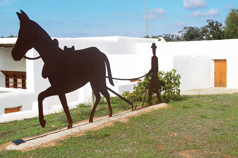 Der Weg führt vorbei an der Mühle Can Planetes, wo es aussieht wie aus einem Don Quichote Roman. Ein paar Meter weiter unterhält die Gemeinde Santa Eulàlia Äcker mit allerlei Gemüse, das für die Einheimischen gedacht ist (wenn ich das richtig verstanden habe).