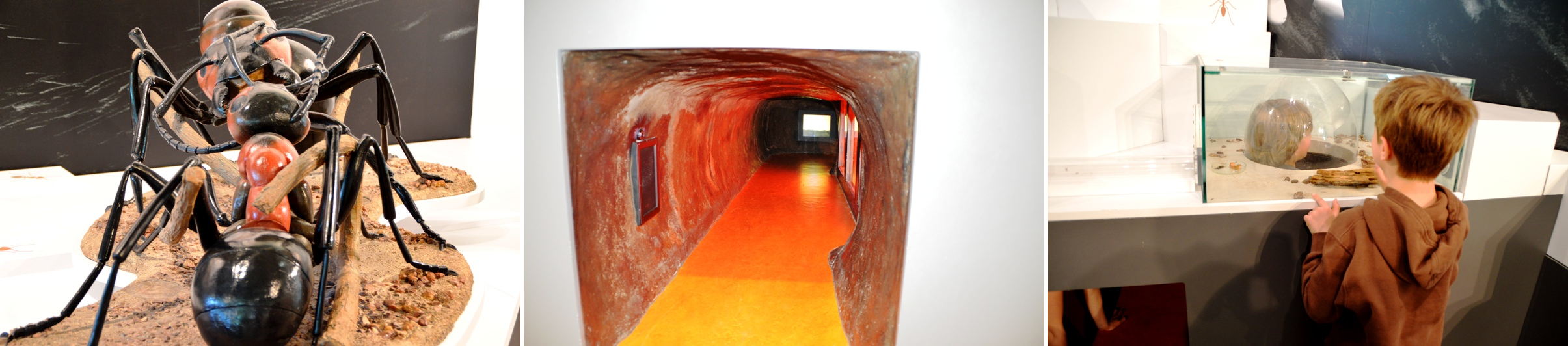 Mir hat es vor allem gefallen, wie weitläufig alles ist und wie kreativ die verschiedenen Themenfelder angegangen werden. Natürlich gibt es viele Bildschirm-Terminals, viele Experimentier-Stationen und Bildtafeln. Aber daneben auch immer wieder Überraschungen wie zum Beispiel den Ameisenbau, durch den die Kids selbst durchkrabbeln können, um dann am anderen Ende aus der Erde in Ameisenperspektive aufzutauchen.