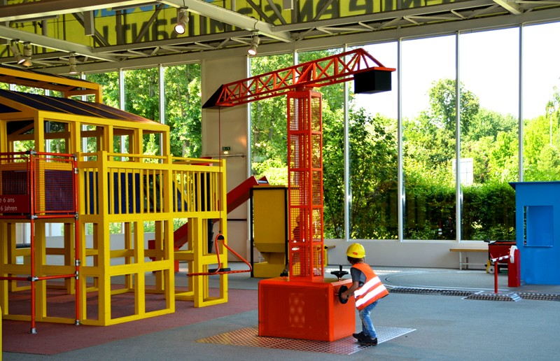 Kiddo 2 war mit vier Jahren für einiges noch zu klein, konnte aber dafür an anderer Stelle in die Vollen gehen. Einige Bereiche sind explizit für Drei- bis Sechsjährige gedacht. Der Knaller war natürlich die riesige Baustelle mit diversen Experimentiermöglichkeiten vom Kransteuern bis zum Steine Verladen.