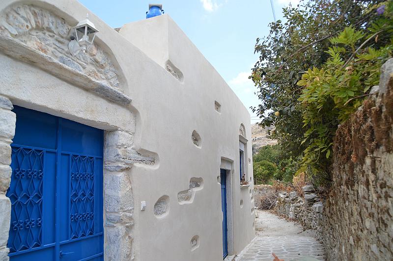 … ist um einiges größer und liegt direkt am Fuß des höchsten Inselberges Zas (= Zeus). In Filotí sind wir durch steile Gassen gekeucht gebummelt und wurden immer wieder dafür belohnt: Hübsche Häuser, Türen, Ausblicke! Einige paar hundert Meter hinter Filotí den Berg hinauf steht auf einem Felsplateau auch eine sehenswerte Kirche, von der aus man schon wieder einen genialen Blick auf die Tragea-Hochebene hat. (Übrigens, wenn jemand weiß, wie diese Kirche heißt, dann bitte schreibt es mir als Kommentar. Ich hatte mir den Namen nicht gemerkt und konnte ihn jetzt im Nachhinein unglaublicherweise nicht herausfinden.)