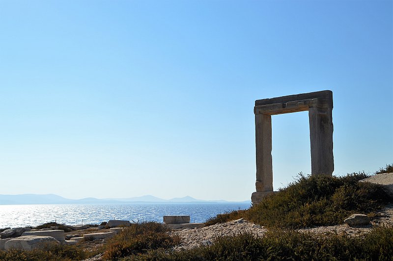 Ganz bekannt ist das riesige Tempeltor auf einem Hügel vor Naxos Stadt. Da muss man definitiv hin, der Blick von dort ist klasse und falls ihr gerne fotografiert, könnt ihr dort Stunden damit verbringen, die verschiedenen Winkel für perfekte Meerfotos mit Tempeltor auszuprobieren.