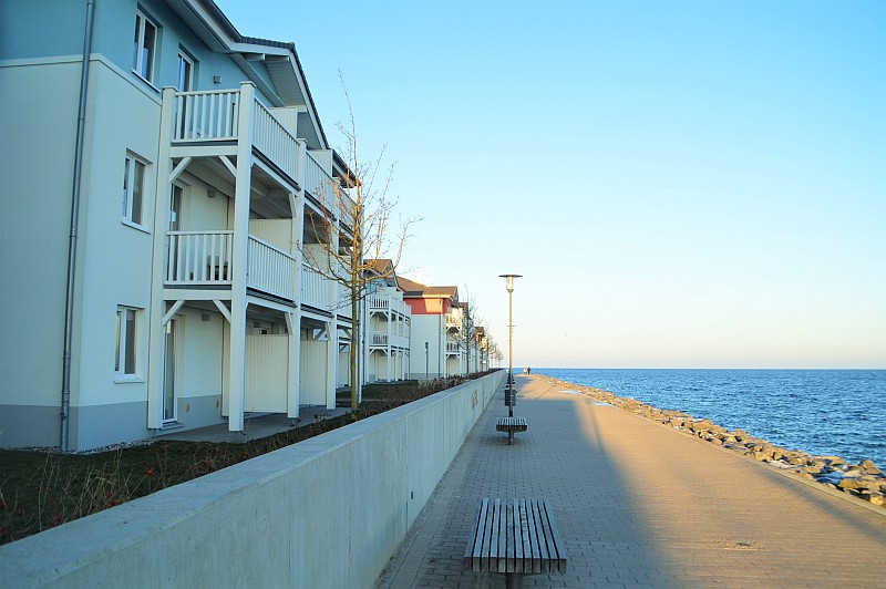 Das ist auch ein Vorteil von Ostsee-im-Winter: Die Hotels sind ziemlich leer, die Preise natürlich viel besser als in der Hochsaison. Wir waren im Dorfhotel Boltenhagen in der Weißen Wiek. Das ist eine große Apartment-Anlage, eigentlich ein eigenes kleines Dorf direkt an der Küste. 600 Betten! Es gibt mehrere Restaurants, eine eigene Ausflugsboot-Anlegestelle, x Apartment-Häuser, Schwimmbad, Spielplätze etc. etc. Vermutlich verlaufen sich die Gästemengen im Sommer, jetzt im Winter waren es ohnehin nur eine Handvoll – eine sehr ruhige Atmosphäre.