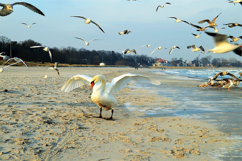Möwen und Schwäne sind definitiv in der Überzahl Anfang Januar am Boltenhagener Strand. Wann hat man das schon mal? Einen langen weißen Sandstrand fast nur für sich allein. Irgendwo steht meistens jemand mit einer Tüte Brot und füttert die Möwen. Neben deren Gekreische sind  Wind- und Wellenrauschen das einzige Geräusch. Außer natürlich unseren Lautsprecher-Kindern, die sich über den ganzen Strand zubrüllenrufen, was für tolle Muscheln sie gerade gefunden haben ;-)