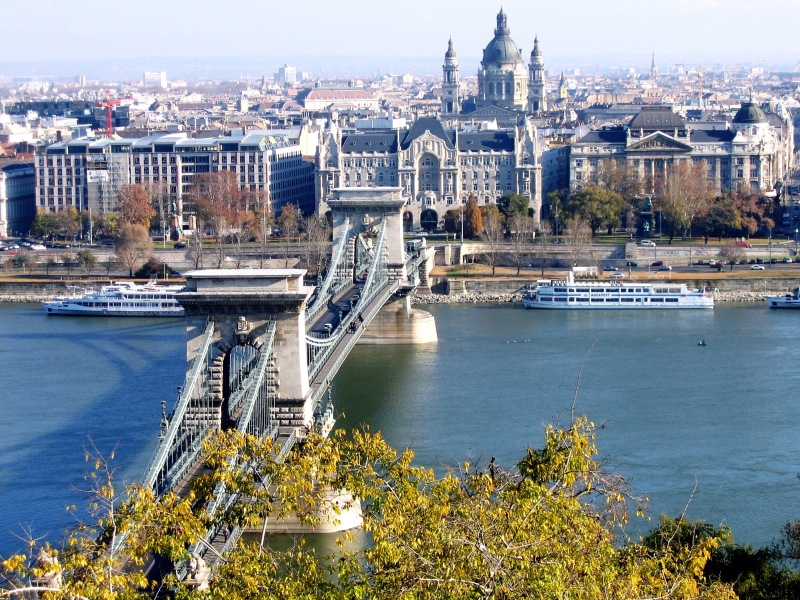 Herausgekommen ist jetzt eine Rundreise, die auch mich richtig lockt: Eine knappe Woche Wien mit Wohnung direkt im Zentrum. Und wenn wir die Kids dann etwas strapaziert haben mit langem Sightseeing, fahren wir weiter zum Baden am Plattensee. Dort haben wir ein einfaches Hüttchen, das aber direkt am See liegt und nur durch eine Wiese vom Wasser getrennt ist. Ich bin jedenfalls letzte Woche gleich mal los, habe einen Grill gekauft und freue mich auf relaxte Tage. Wenn wir dann so wundervoll ausgeruht sind, fahren wir weiter nach Budapest. Dort haben wir vier Tage Zeit, durch diese schöne Stadt zu spazieren. Dieser Programmpunkt hat auch noch einen kleinen romantischen Aspekt. Wir waren vor zehn Jahren nämlich schon einmal dort, damals auf unserer kurzen Hochzeitsreise. Und weil sie so kurz war, hatten wir uns ein richtiges Hotel-Highlight gegönnt. Ihr seht es hier auf diesem Bild direkt am Ende der Kettenbrücke.